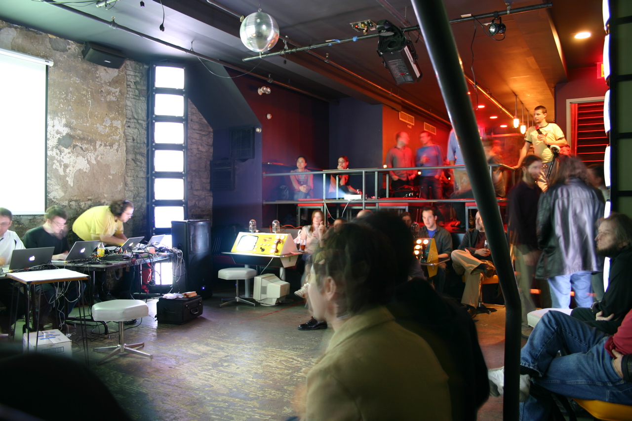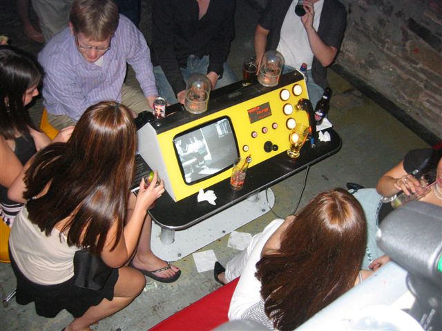 We were initially inspired by the idea of including social "toys" to a bar by a former New York City bar called "Remote Lounge" (remotemounge.com). We liked the idea, but knew of social problems that came along with including anonymous cameras in a space full of drunk people. A lighting system, we felt, could act as a social tool (ice-breaker, conversation piece), and a sort of collaborative art project as people chose the colors for the lighting system, and as a functional way to control the lighting in the space.