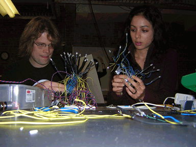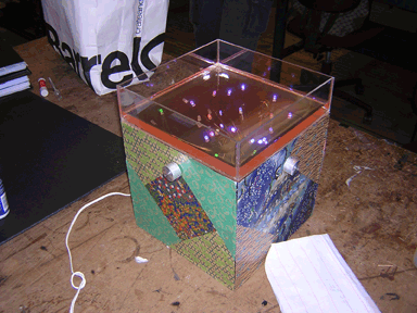 Wendy Coutau, Raudia Kepper, and I worked together on our Pcomp mideterm project. During our initial few meetings, we decided that it would be interesting to make some sort of interactive lighting system for a bar or restaurant- something that acted as an art piece, a simple interactive toy, and a somewhat-democratic way for the patrons of a bar or restaurant to choose the lighting together. We felt this would be fun for patrons, but not consuming to the point of distraction.