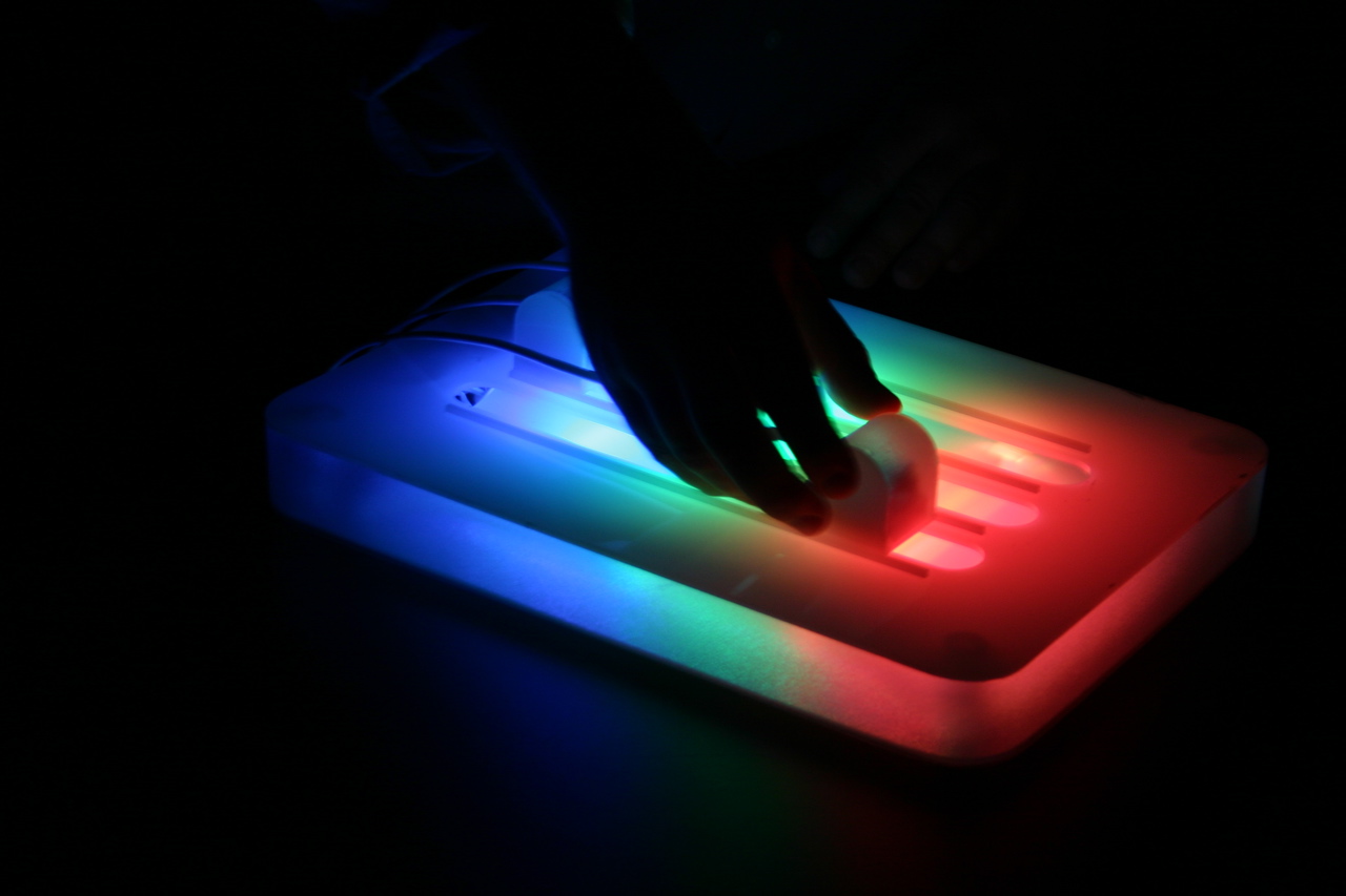 Our idea is to install a control at each table at a bar that would allow an individual to control the brightness and color of a single colored light in the bar ceiling (or other places one might have lighting). The goal would be to encourage interactivity and can act like an ice-breaker. This setup also will allow group control of the lighting; no more problems with everyone at the bar feeling like the place is too dimly lit or too bright.